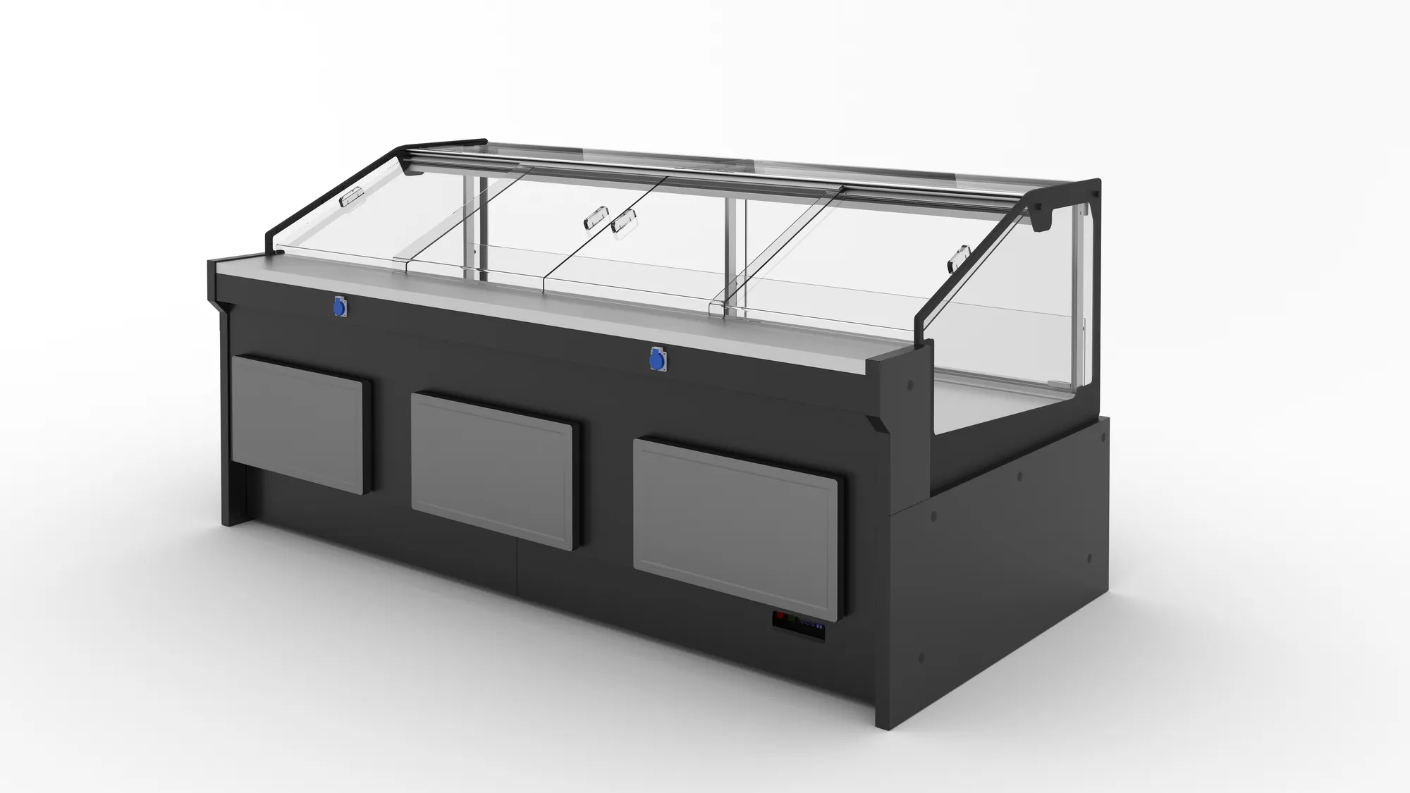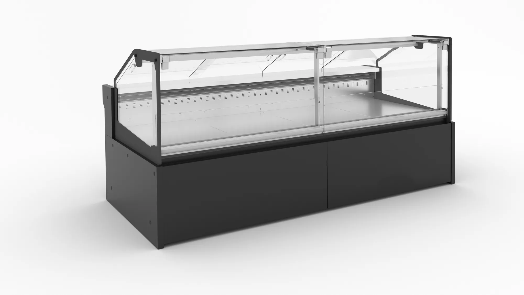 Хладилното отделение под щанда улеснява съхранението на продукти, които все още не са нарязани или подготвени за излагане. Това е практично решение за магазини, предлагащи пресни и чувствителни на съхранение продукти, като осигурява тяхната свежест и качество при последващо предлагане на клиентите.